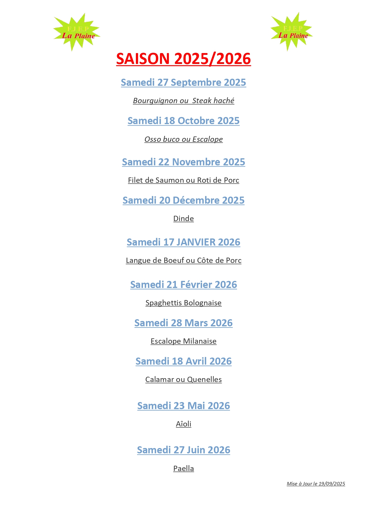 Les dates sont transmises à chaque adhèrent en début d’année ou lors de l’adhésion.